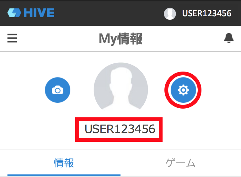 4.確認したHIVE IDが下記のように「USER+数字」の場合、設定ボタン(歯車マーク)からHIVE ID、パスワードを設定してください。