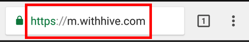 1. お持ちのスマートフォンでブラウザーアプリを起動し、https://m.withhive.comに接続