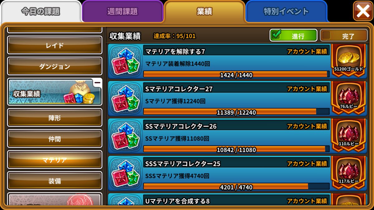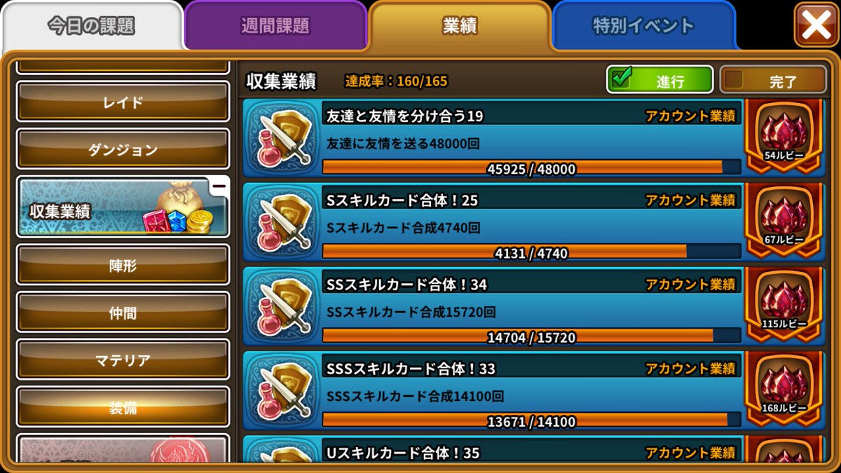 見逃してはいけないのが収集業績。これらはペット×自動周回で知らず知らず達成しています!貰えるルビーの量もものすごいため、ペットは必ず揃えましょう!