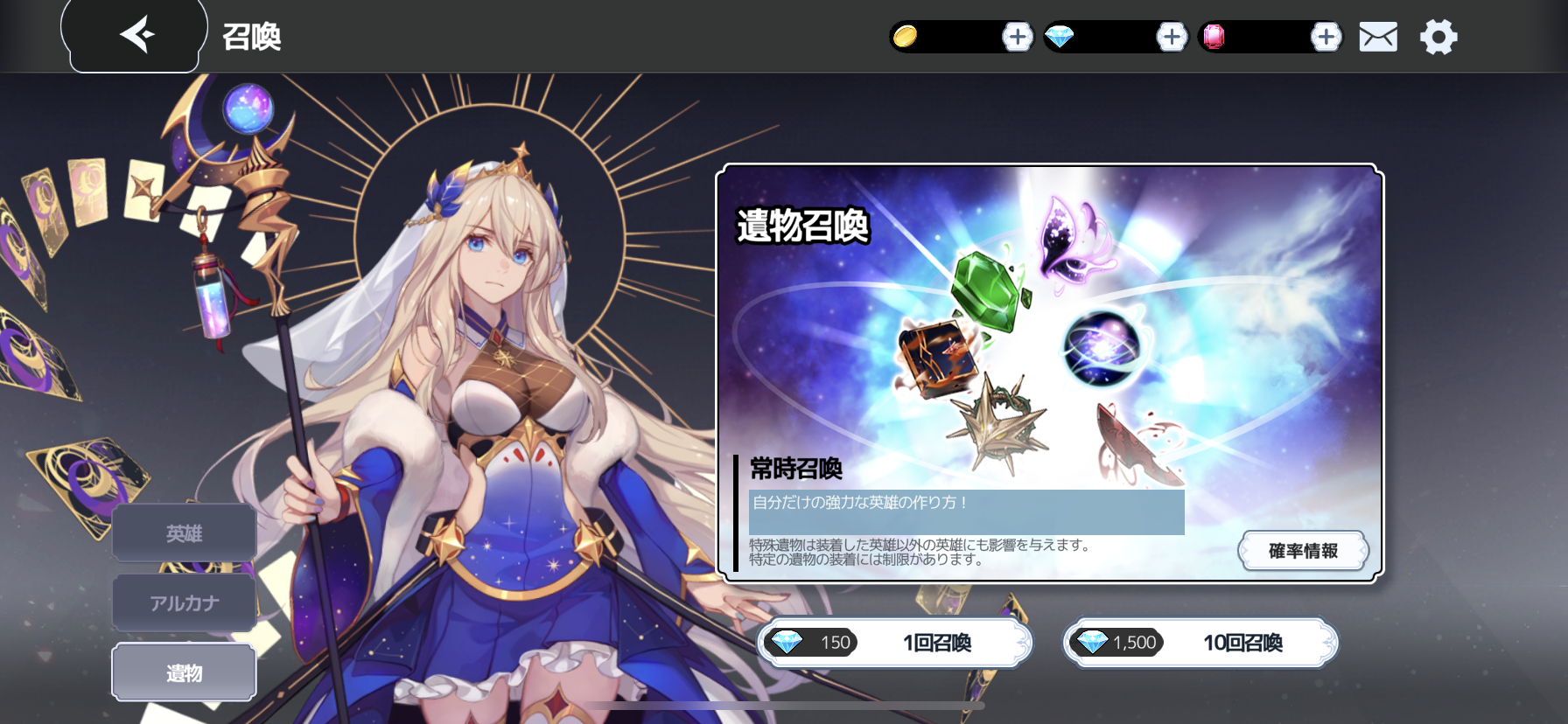遺物召喚はからは、★3~★5一般遺物と★5特殊遺物を獲得できます。