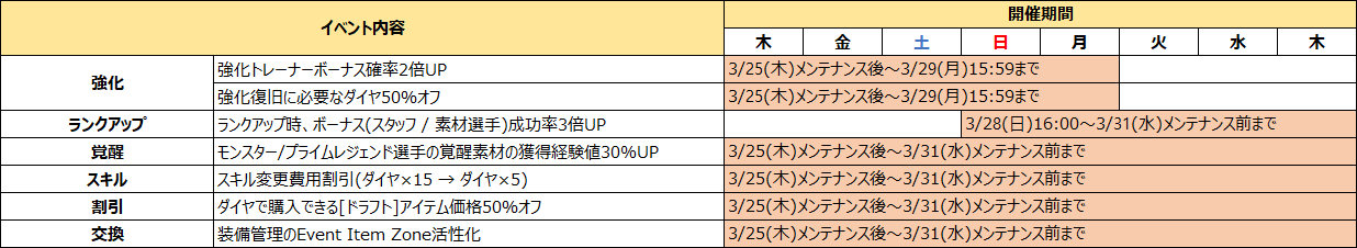 ①期間:3月25日(木)メンテナンス後〜3月31日(水)メンテナンス前まで