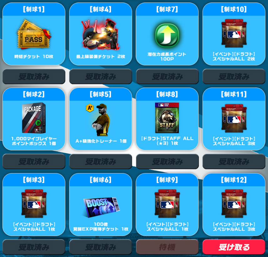※[イベント][ドラフト]スペシャルALLからは、[ドラフト]モンスター(100%)、[ドラフト]10強 ポテンシャル(100%)、[ドラフト]SE PERFECT LEGEND、[ドラフト]ポテンシャル(100%)、[ドラフト]フラッシュバック(100%)、[ドラフト]Projections(100%)、[ドラフト]SE ALL平均能力値90以上の内いずれかを獲得することができます。