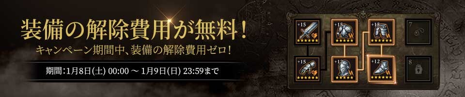 装備 / 聖遺物の解除費用無料キャンペーンを開催いたします。