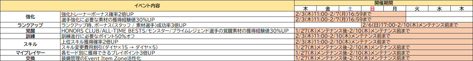 ①期間:1月27日(木)メンテナンス後~2月10日(木)メンテナンス前まで