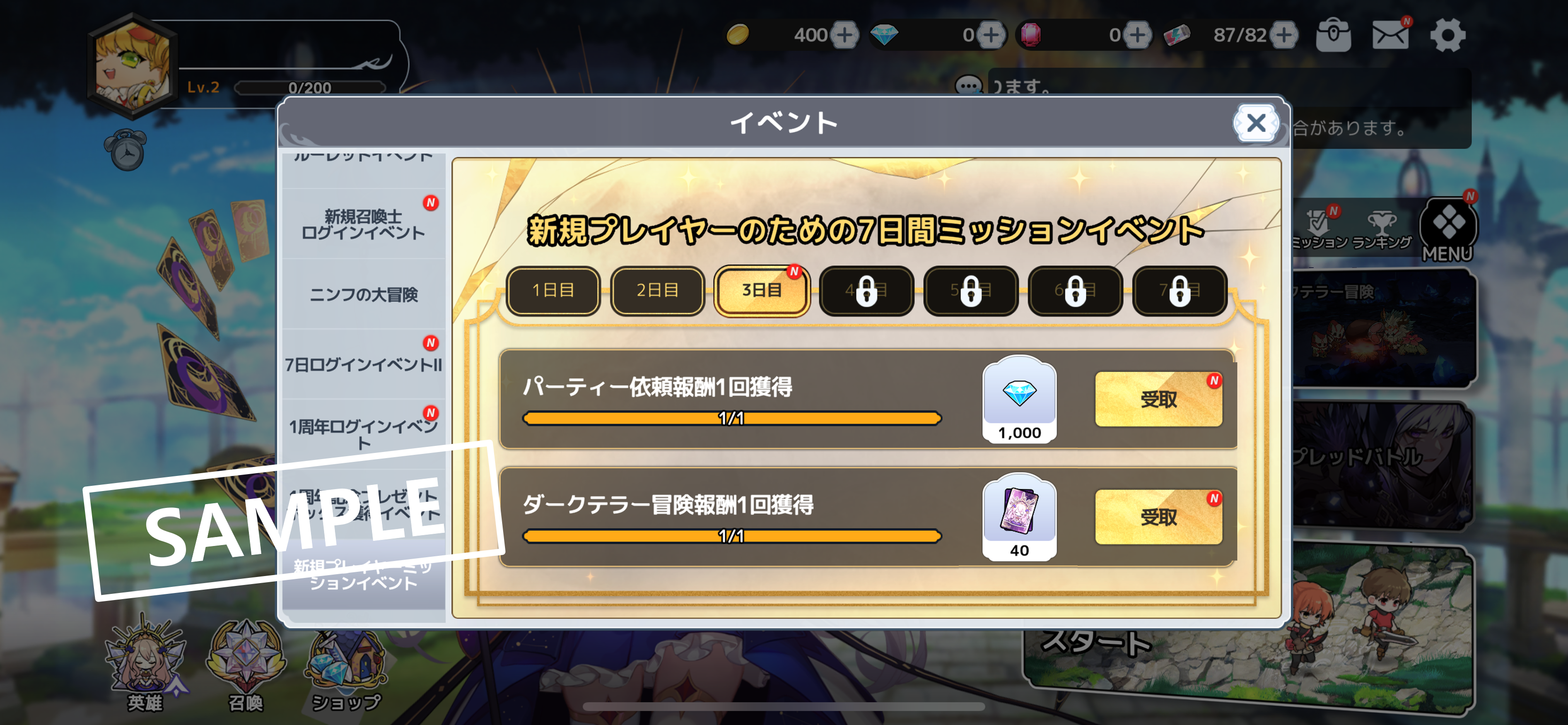 STEP 2. 新規プレイヤーミッションイベントの3日目のミッションをクリアする