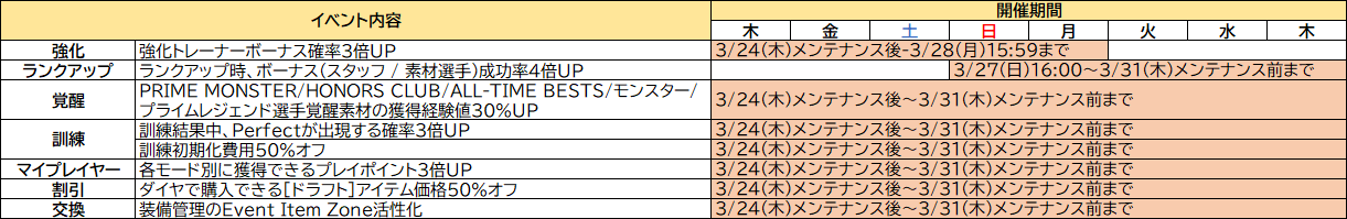 ①期間:3月24日(木)メンテナンス後~3月31日(木)メンテナンス前まで