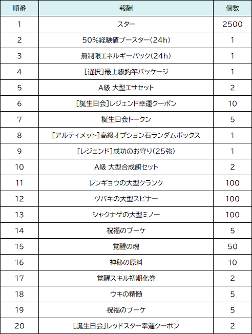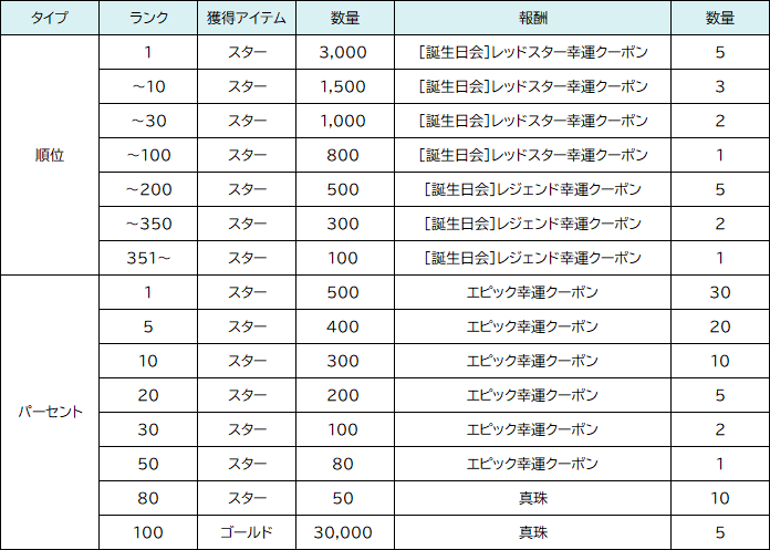 ※イベント報酬およびボーナスは1アカウントにつき1回のみ受け取れます。