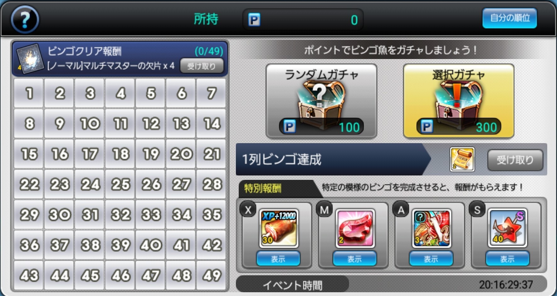 ・選択ガチャ:300ビンゴポイント