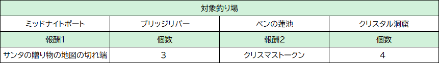イベント期間中に放流するとサンタビンゴポイントを獲得できます。
